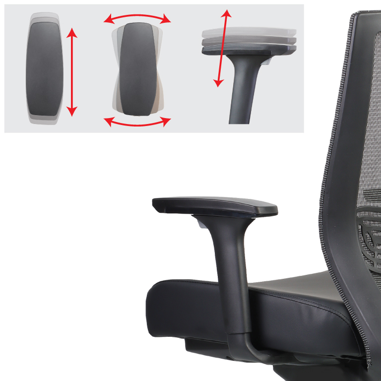 3D (height, pad depth & swivel) adjustable armrest with PU armpad