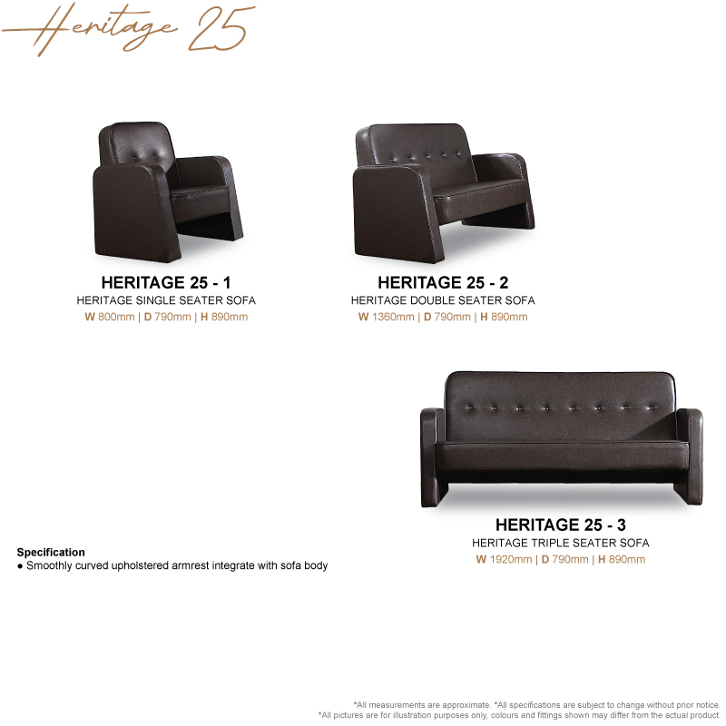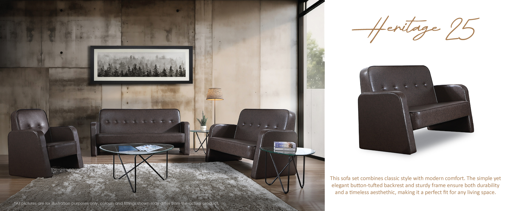 The HERITAGE 25 collection features rich vintage style upholstery with refined button tufting, offering a clean and structured look that complements any modern or industrial interior. Its solid, geometric frame design delivers both visual strength and exceptional comfort. This series is ideal for executive offices, hotel lobbies, waiting areas, and contemporary living spaces.