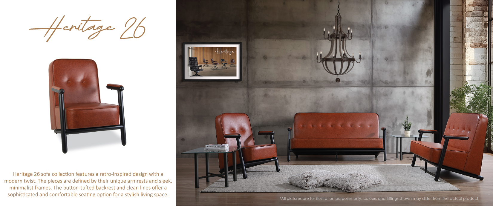 Ideal for contemporary homes, offices, or commercial spaces, the HERITAGE 26 collection elevates any room with its sophisticated, yet simple design. The clean lines and stylish details make it a standout choice for those who appreciate both form and function. Whether you're outfitting a living room or a professional workspace, these versatile pieces will seamlessly enhance the look of any environment.