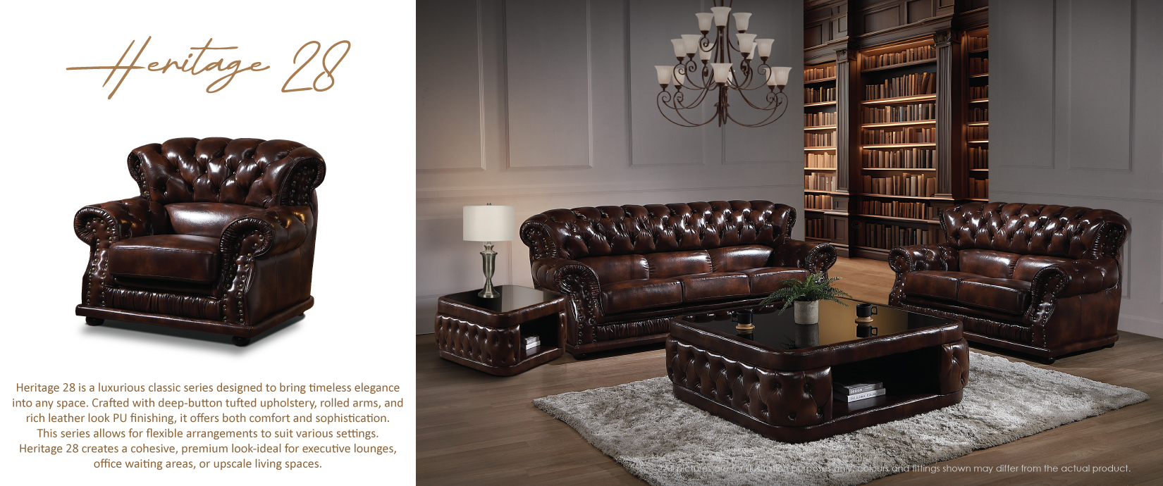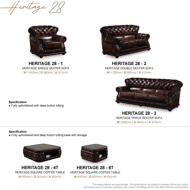 Discover the HERITAGE 28 Collection, a perfect fusion of classic design and luxurious comfort. This premium furniture upholstered in rich vintage style with distinctive button tufting and nailhead detailing for a sophisticated, traditional look.