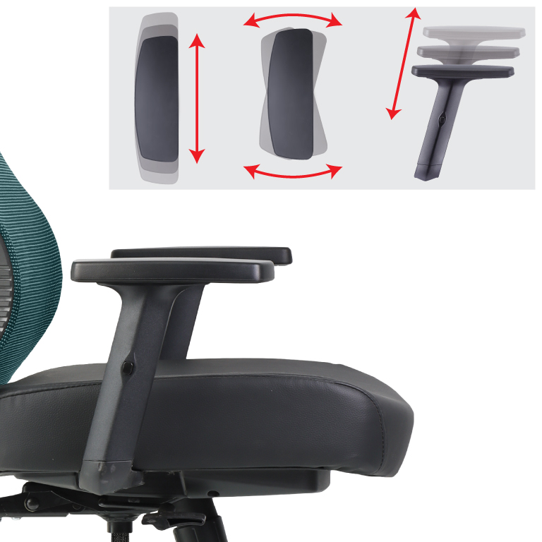 3D (height, pad depth & swivel) adjustable armrest with PU armpad